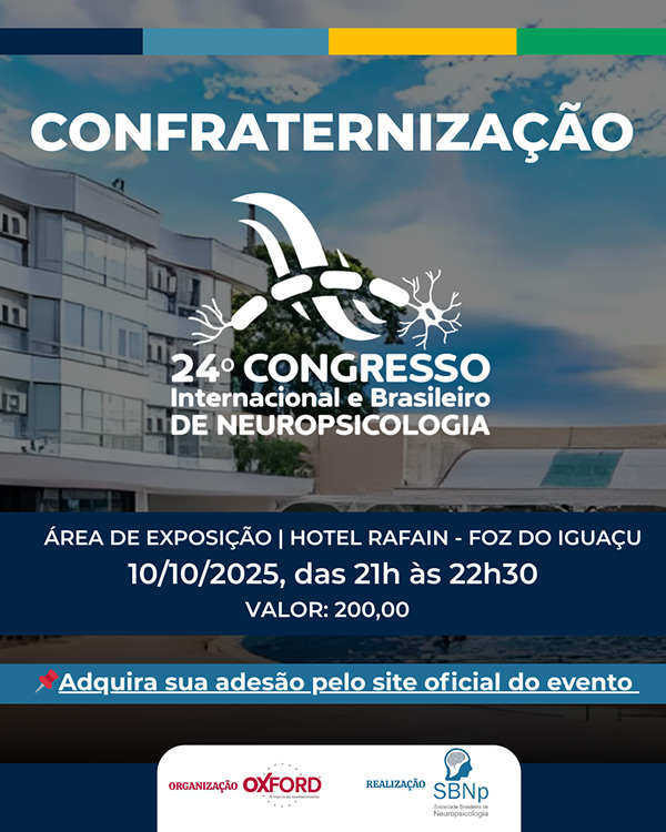 A Sociedade Brasileira de Neuropsicologia (SBNp) tem o prazer de convidá-los para o 24º Congresso Internacional e Brasileiro de Neuropsicologia, que acontecerá de 9 a 11 de outubro de 2025, em Foz do Iguaçu.